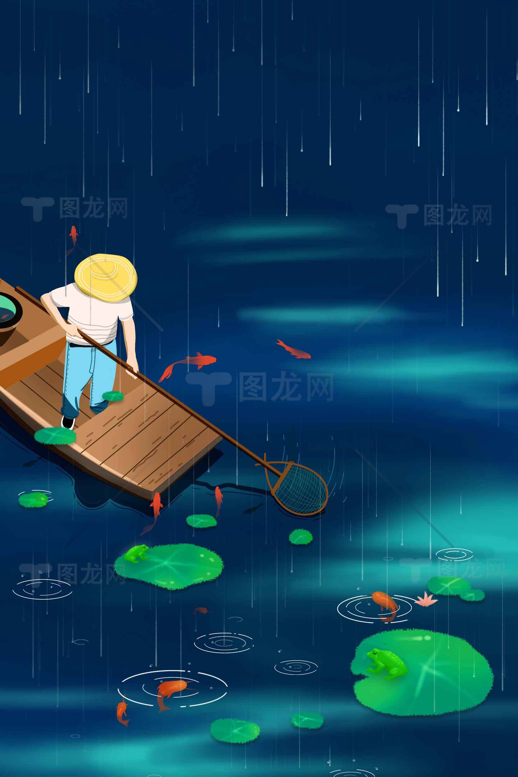 这张作品的主题是:雨中渔舟与荷塘的宁静画面,以深蓝色为主色调,主体文字图片皆可替换修改,您可能还对荷花池,雨天意境,渔船风景,水面涟漪,自然插画,深蓝背景,雨中荷塘,渔夫与自然,水上生活,荷塘雨景等内容感兴趣,雨中渔舟与荷塘的宁静画面格式为PSD,作品编号:14559,尺寸为3543*5315像素,海报素材大小是87.684M。欢迎会员免费下载。
