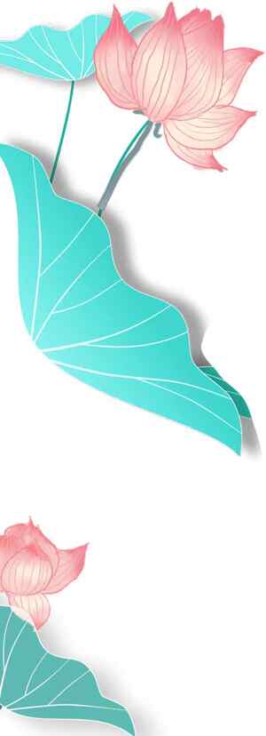粉色荷花与蓝色荷叶插画设计