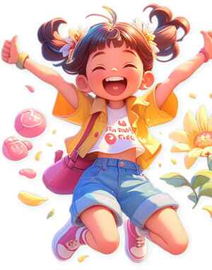 活力女孩卡通插画:夏日阳光与花朵