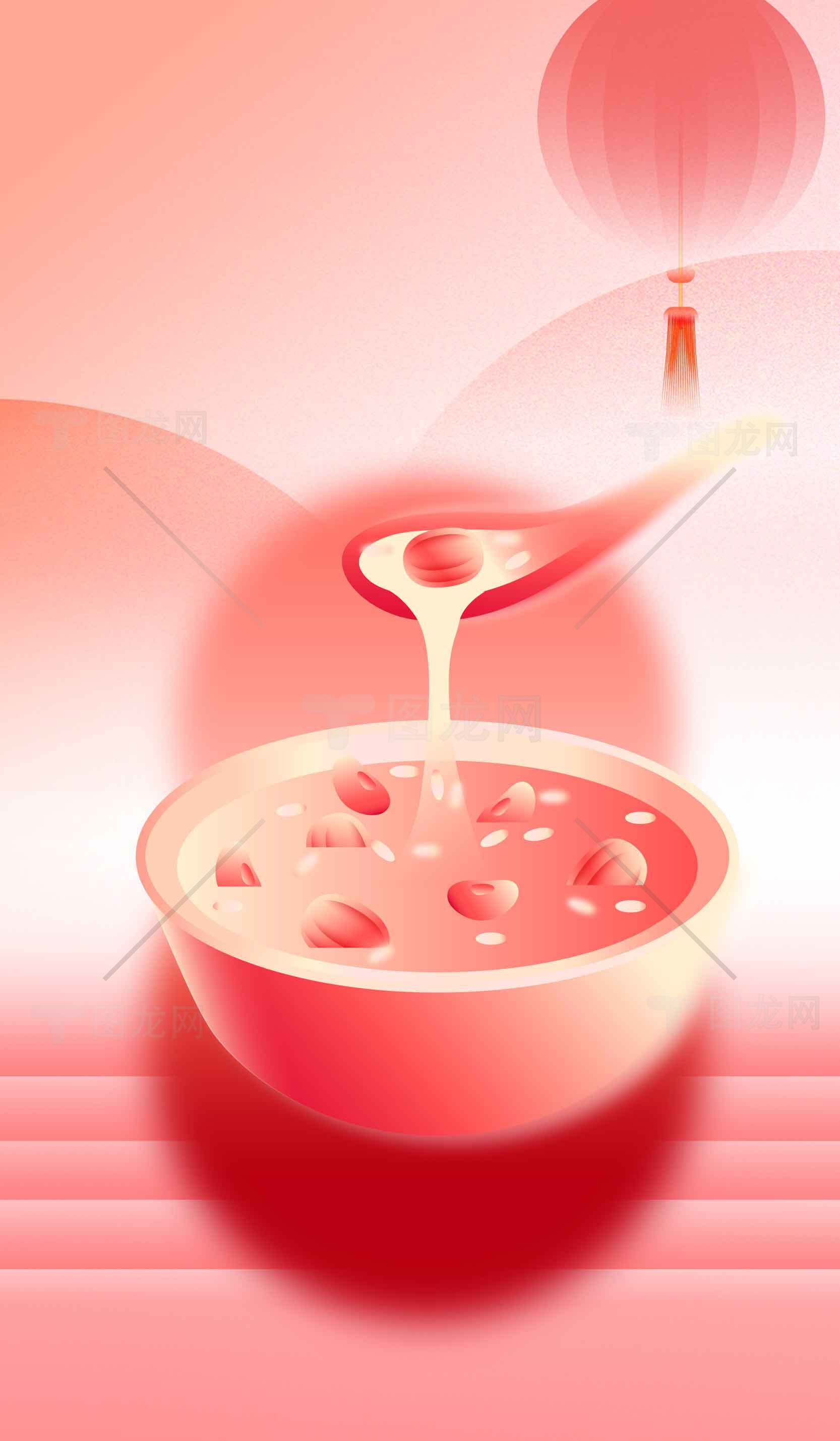 元宵节传统美食插画:温暖的红枣汤圆与春日花开