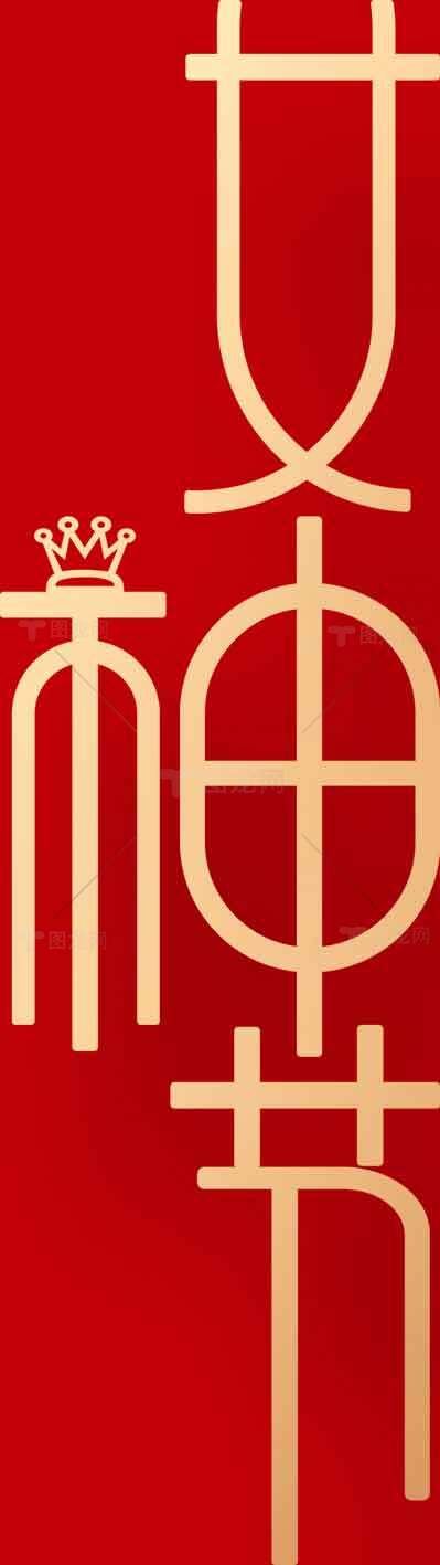 女神节金色字体设计红色背景图片