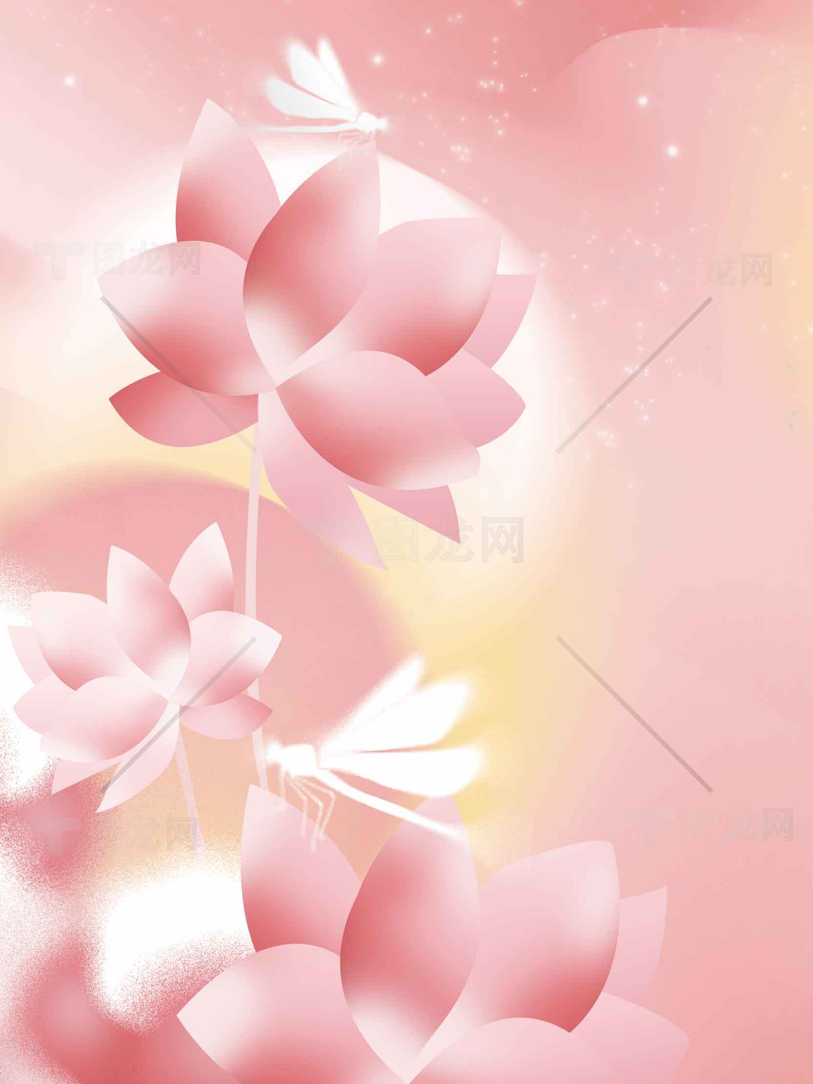 唯美荷花与蜻蜓插画背景