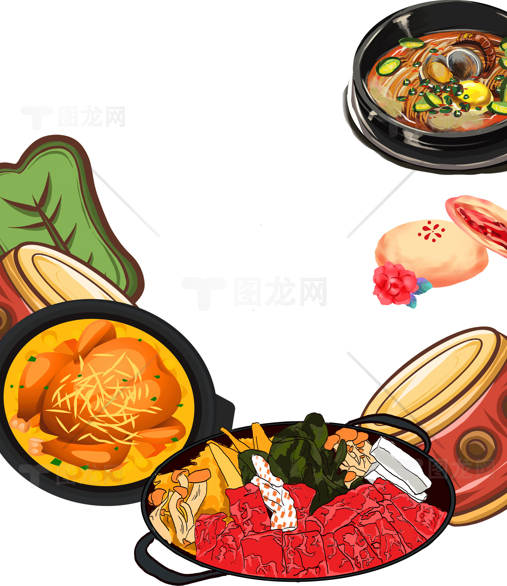 美味的中国火锅和川菜插画