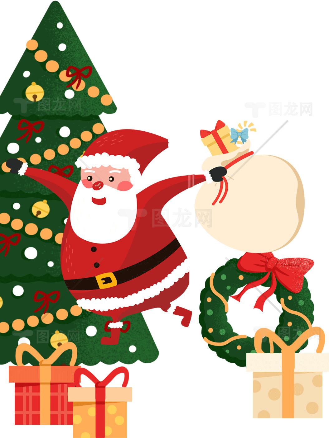 圣诞节祝福:圣诞老人携礼物欢庆节日